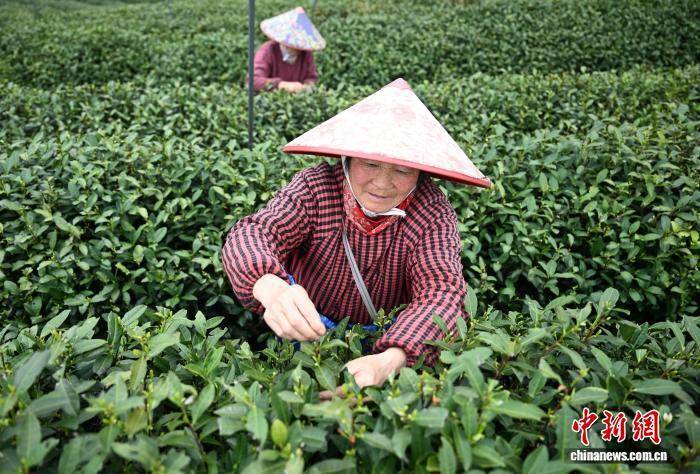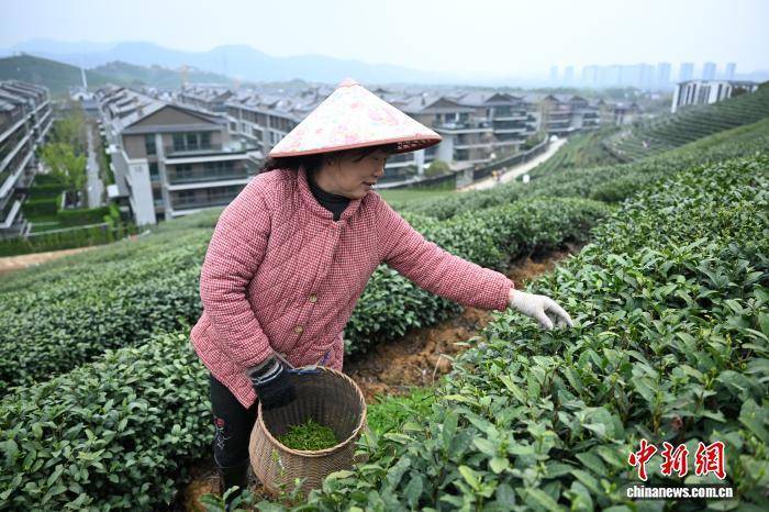 3月27日,采茶工在乡野新居附近茶山上采茶。中新社记者 王刚 摄