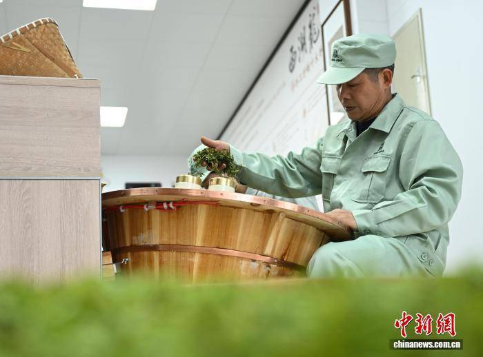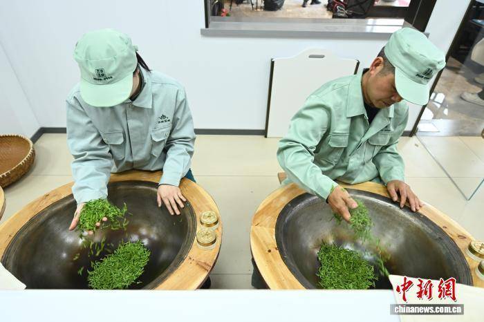 3月27日,杭州顶峰茶业的炒茶师进行传统手工炒茶。中新社记者 王刚 摄