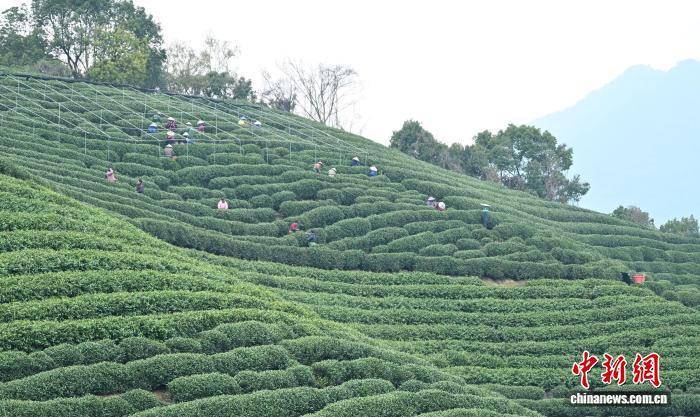 3月27日,不少采茶工在茶山上采摘龙井茶。中新社记者 王刚 摄