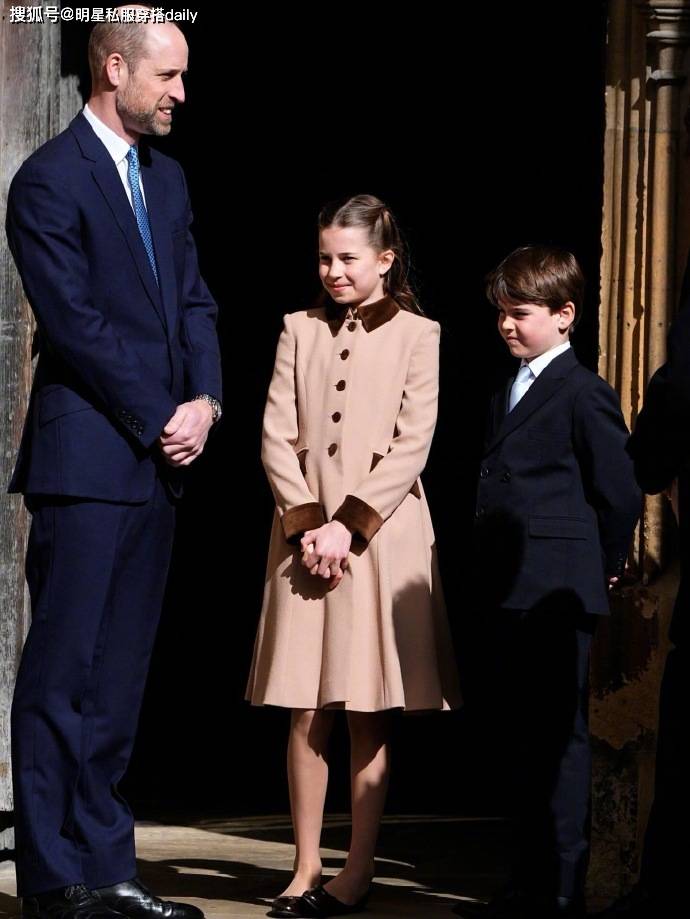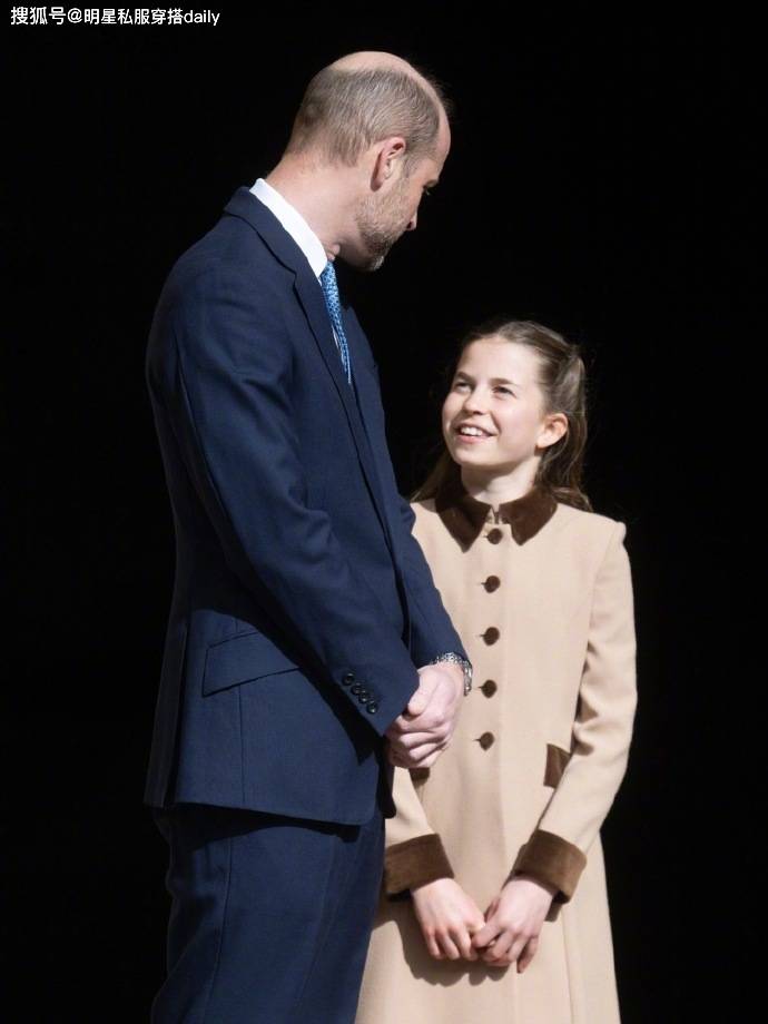夏洛特公主长得颇有伊丽莎白女王的感觉,这次她身穿Catherine Walker & Co定制大衣,脚穿Tory burch 黑色平底鞋,半扎发造型,衬托的她容貌秀丽,出落得越发大气了。