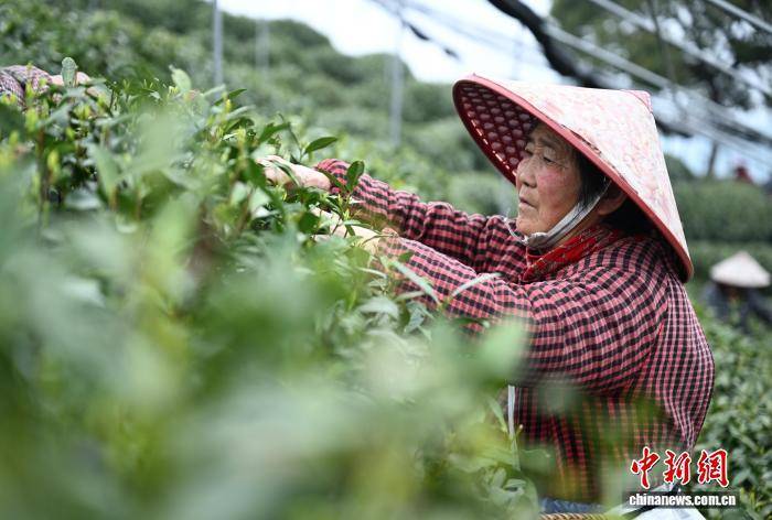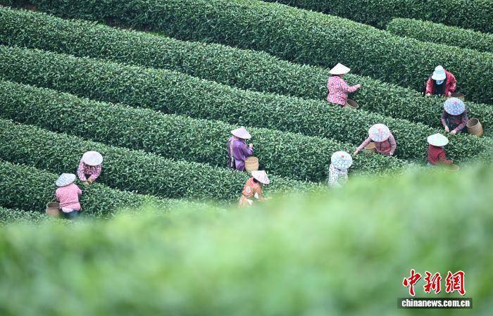 3月27日,不少采茶工在茶山上采摘龙井茶。中新社记者 王刚 摄
