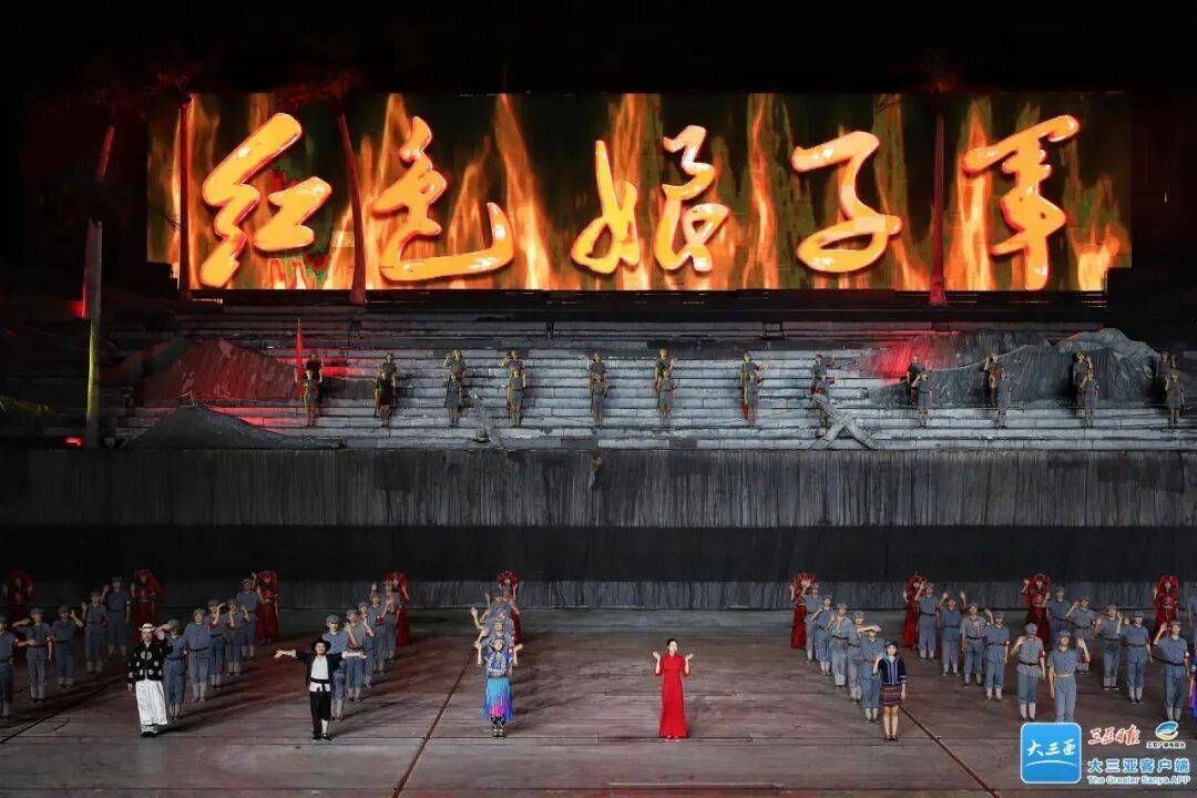 大型椰海实景演出·红色娘子军表演现场。(资料图片)