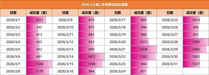 2.在3月的单日数据中,31天有26天都超过了800套,仅有5天在600套左右,还有13天破千套,有7天超过了1300套,单日最高冲上1585套。